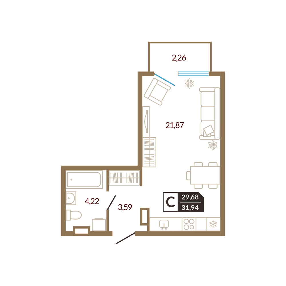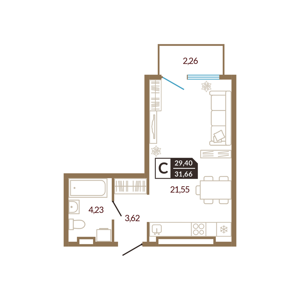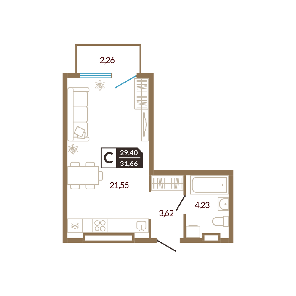 Студия 31.17 м