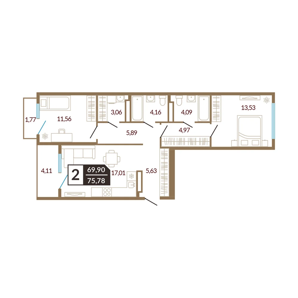 2-комнатная 76.74 м