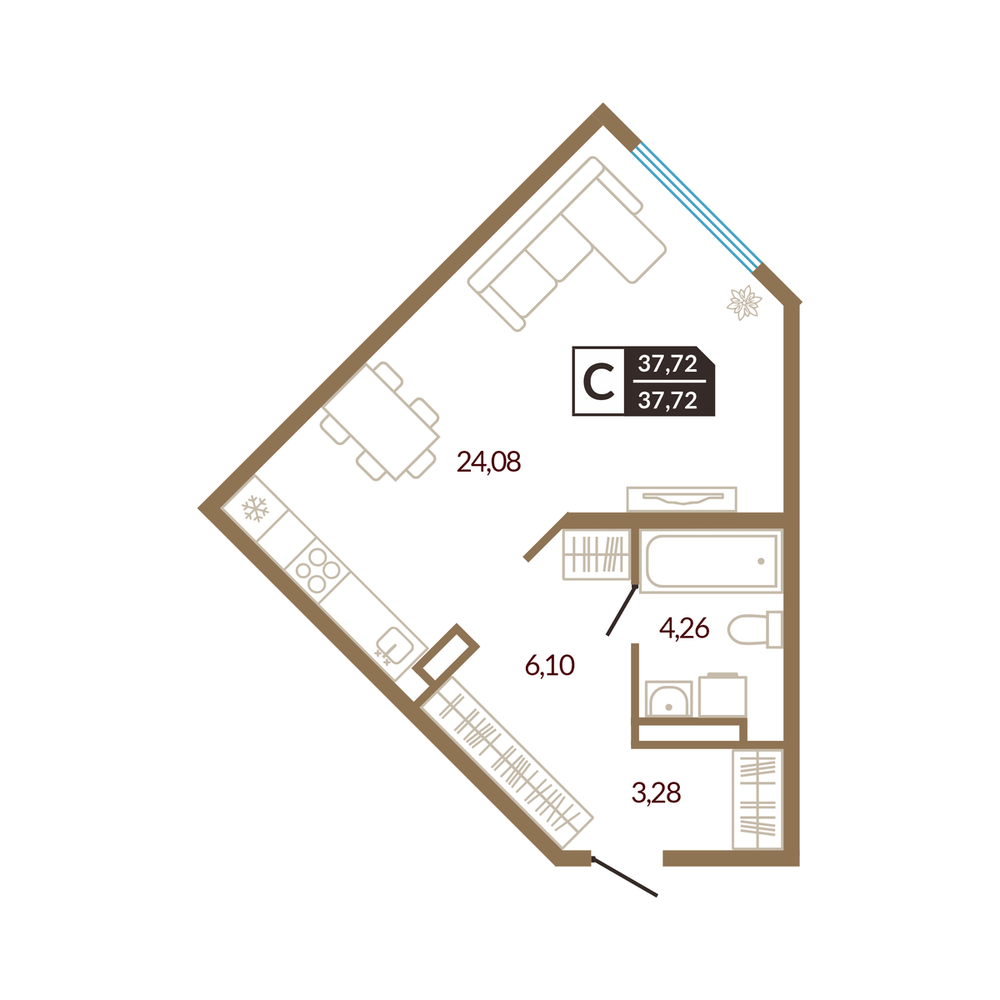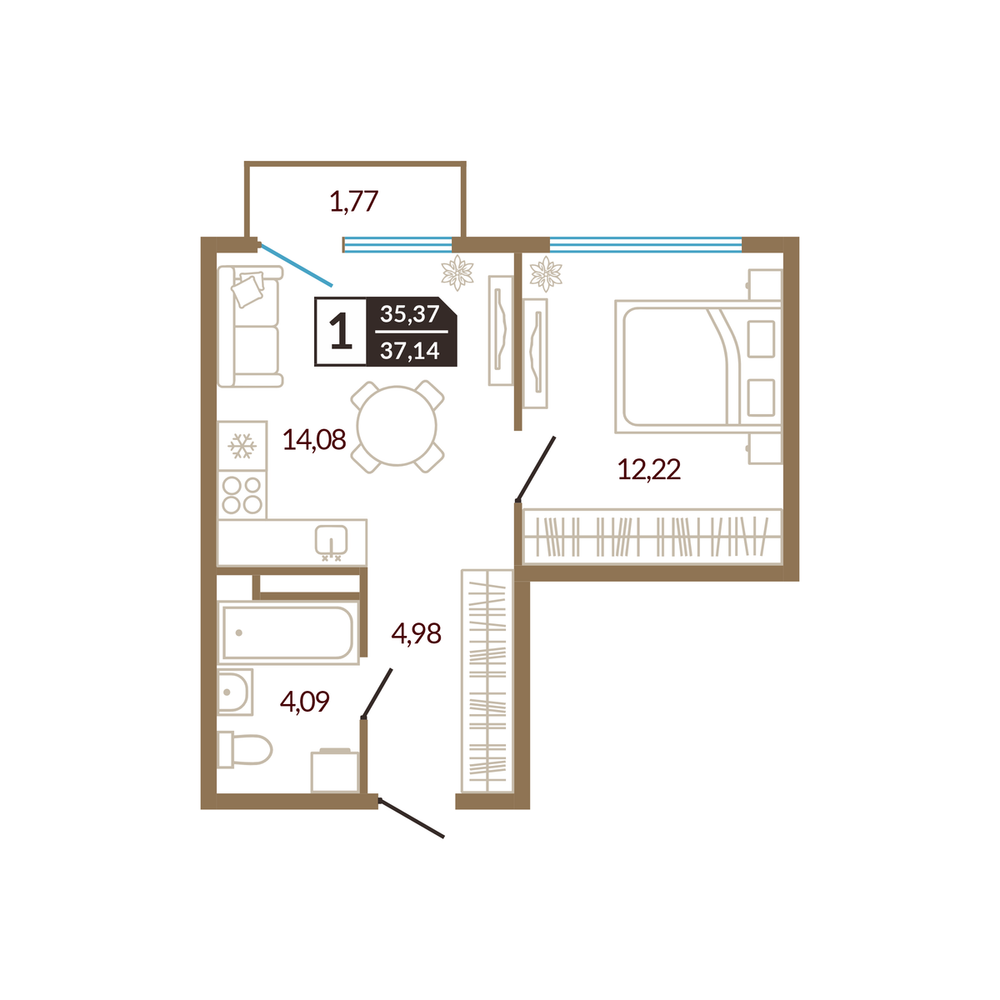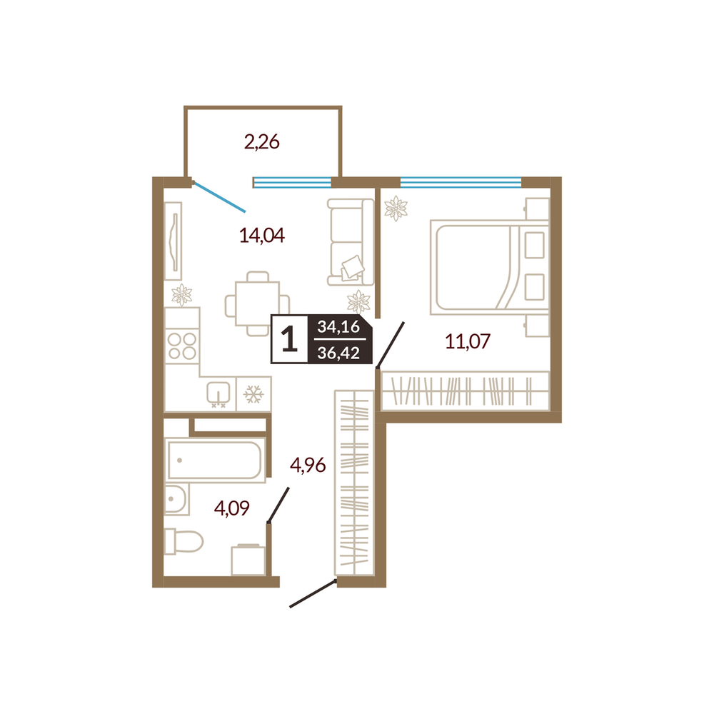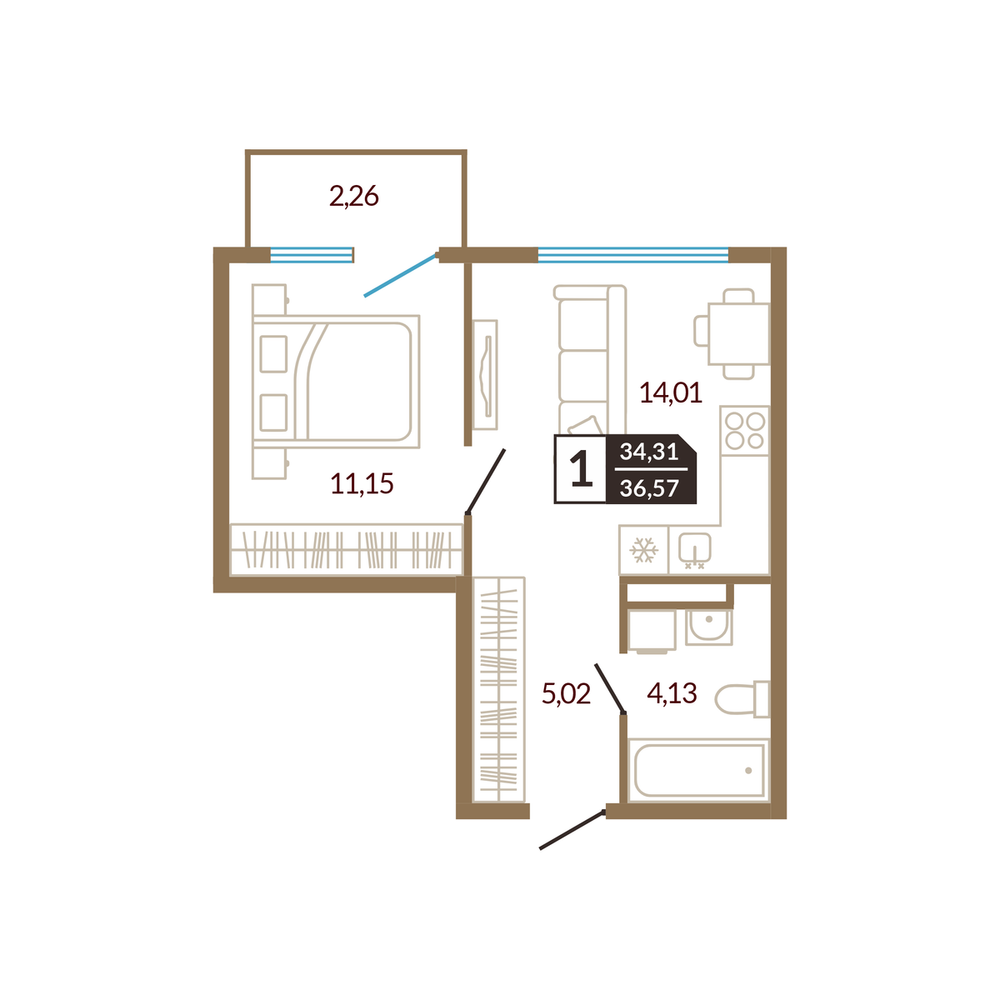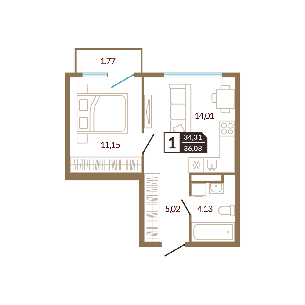 1-комнатная 34.84 м