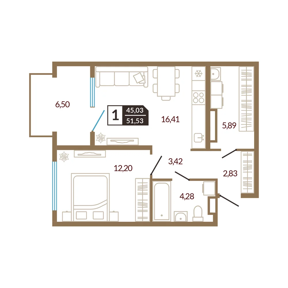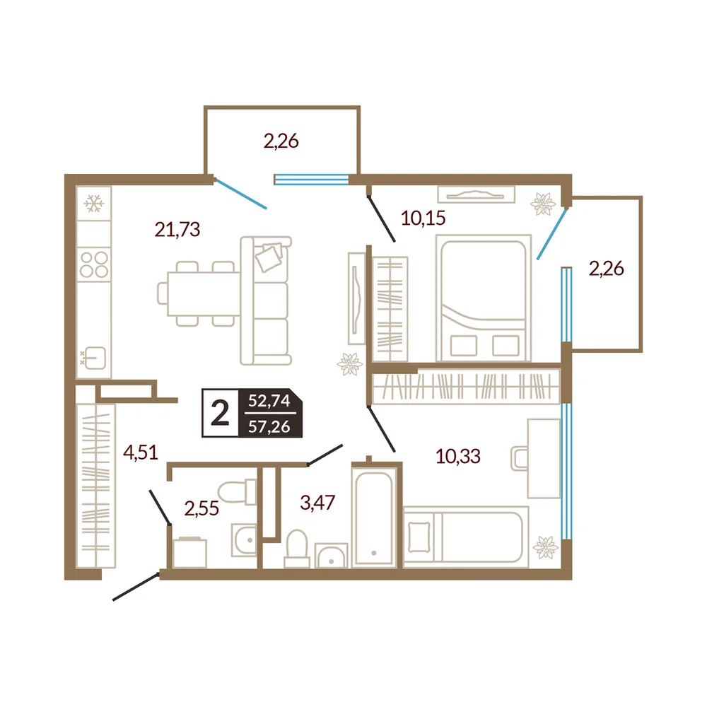 2-комнатная 54.86 м