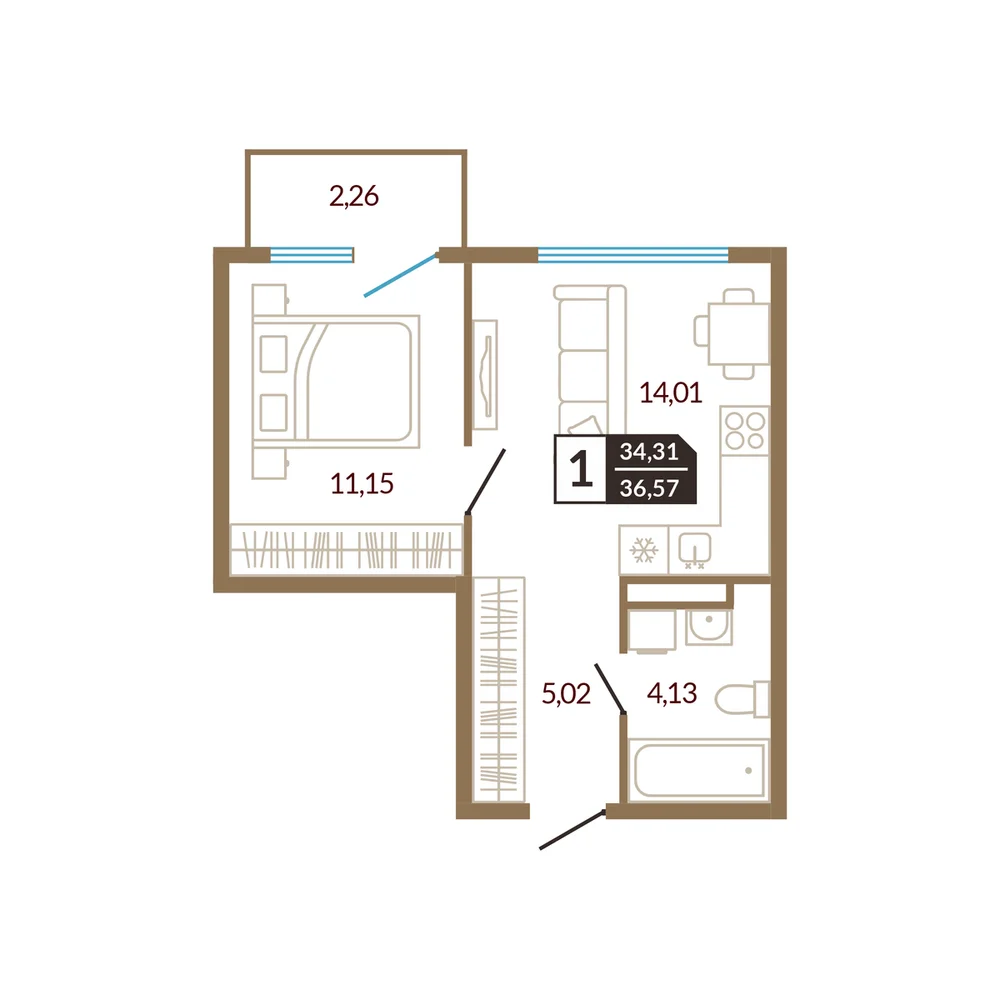 1-комнатная 35.85 м