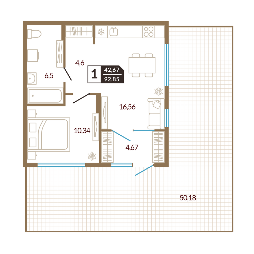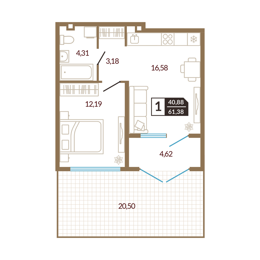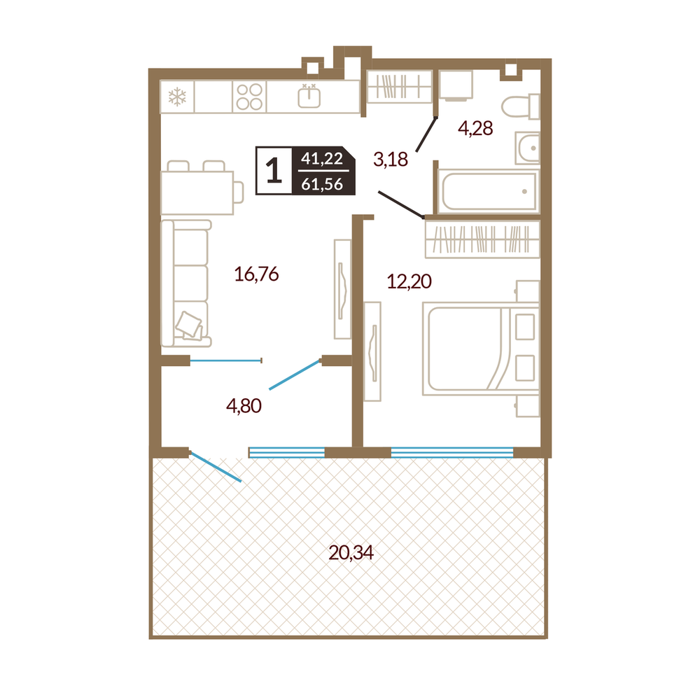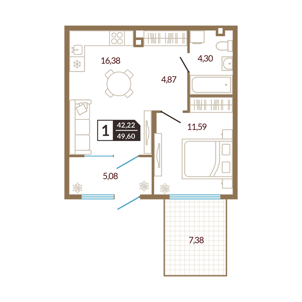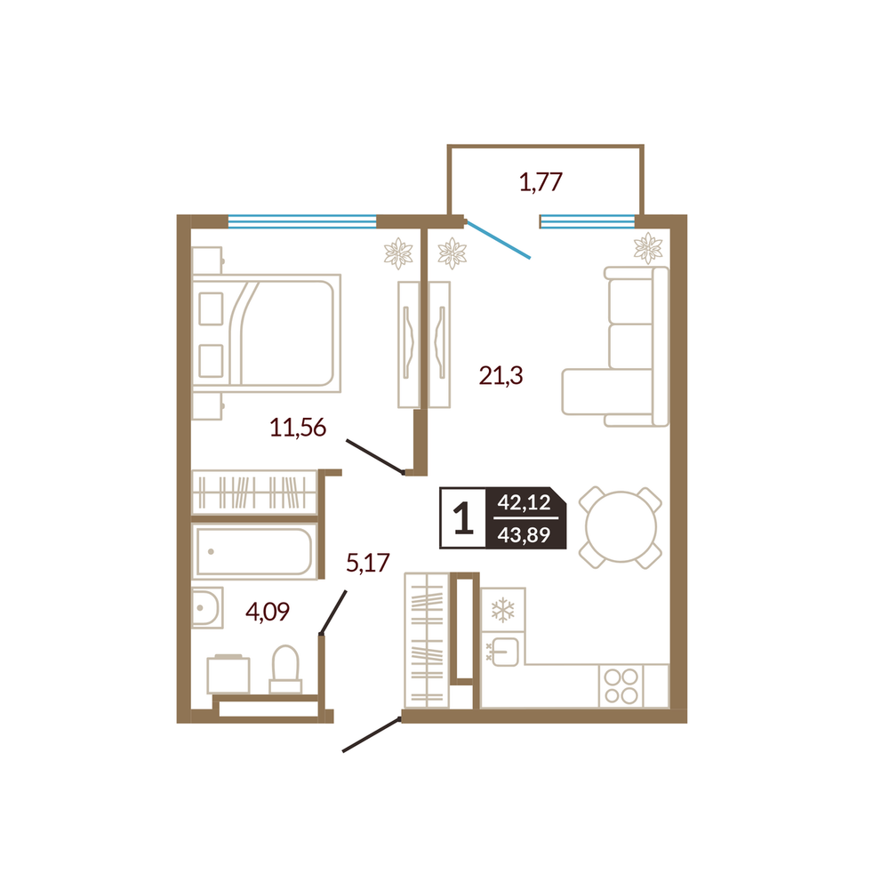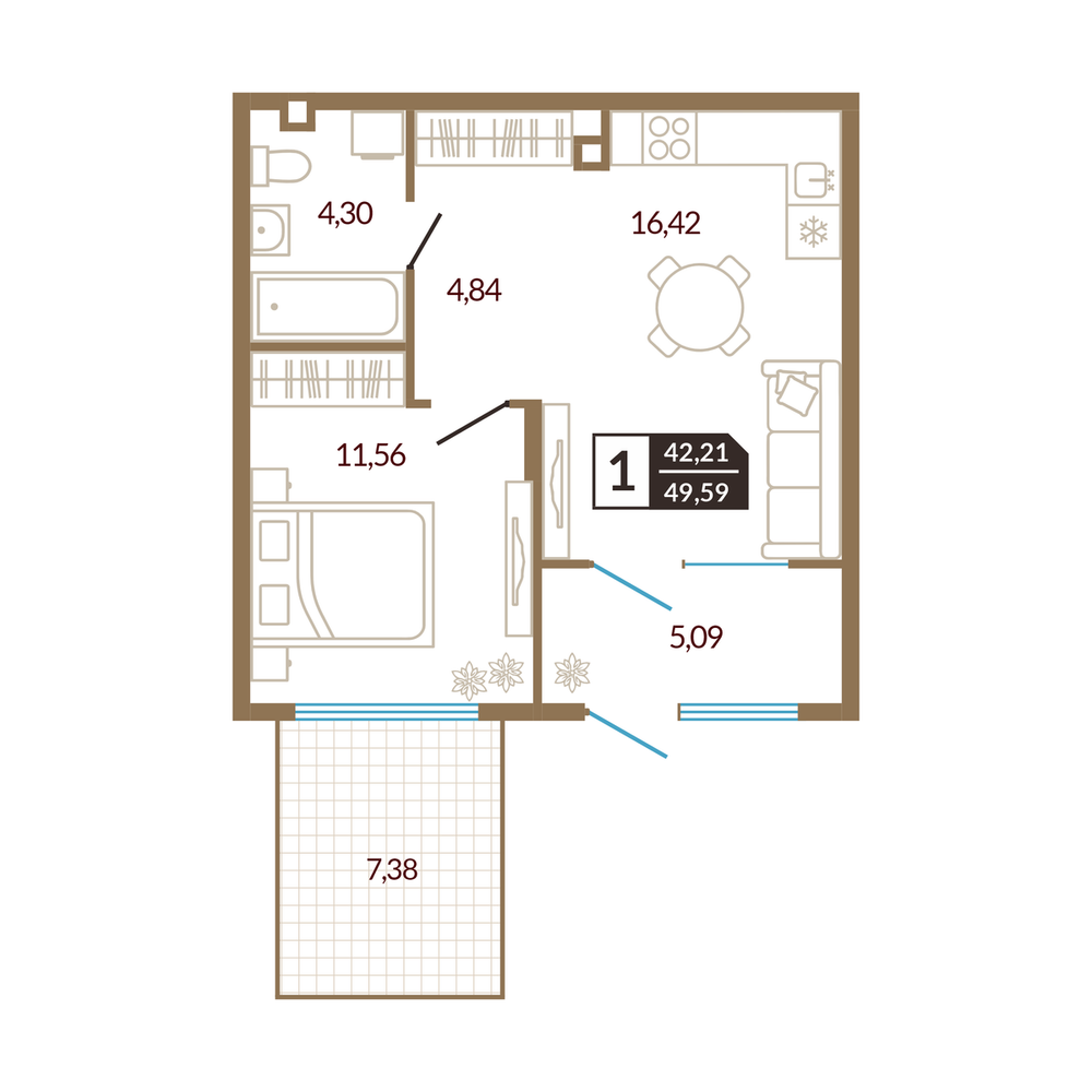 1-комнатная 41.97 м