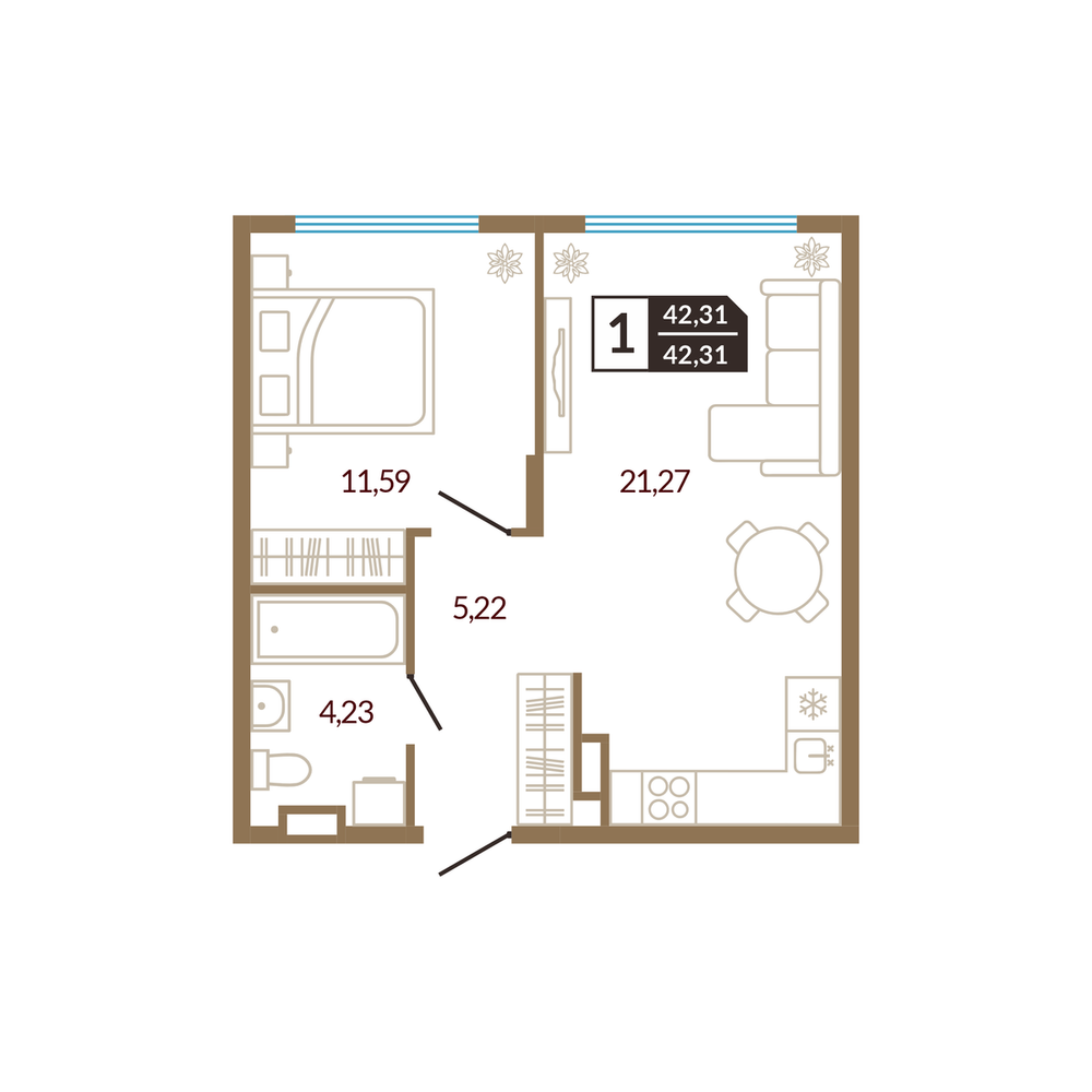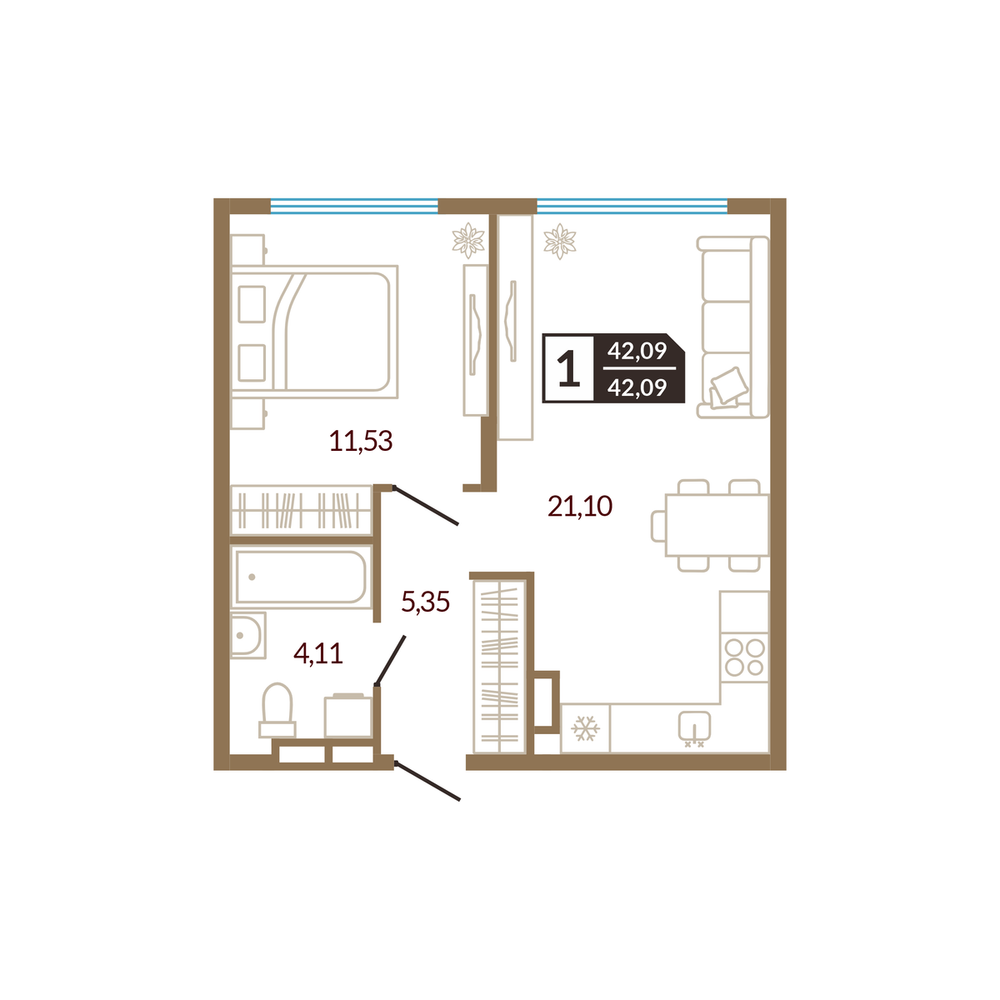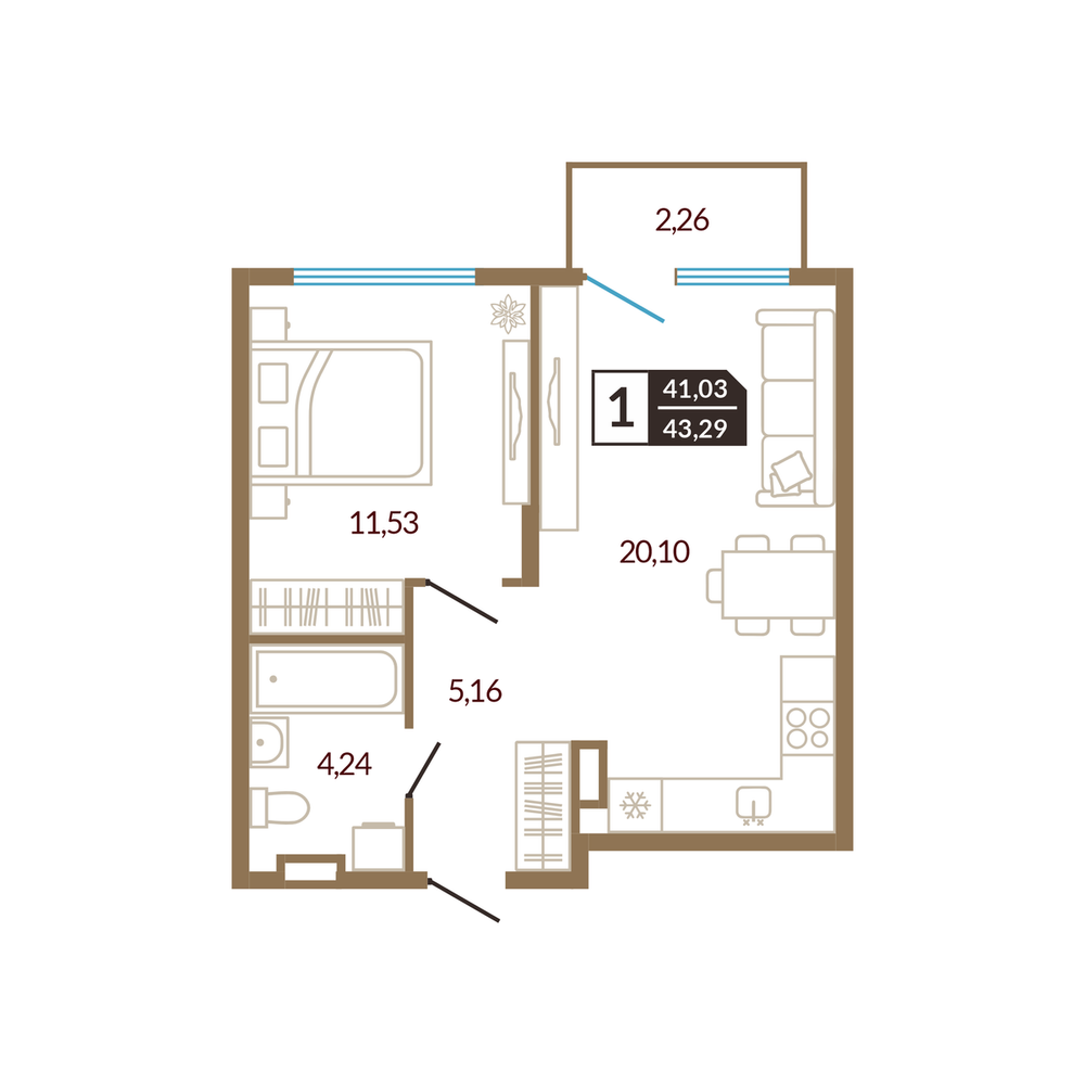 1-комнатная 41.74 м