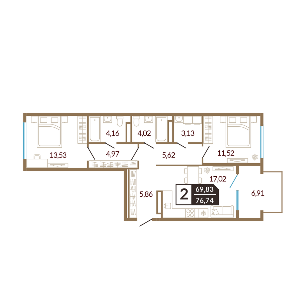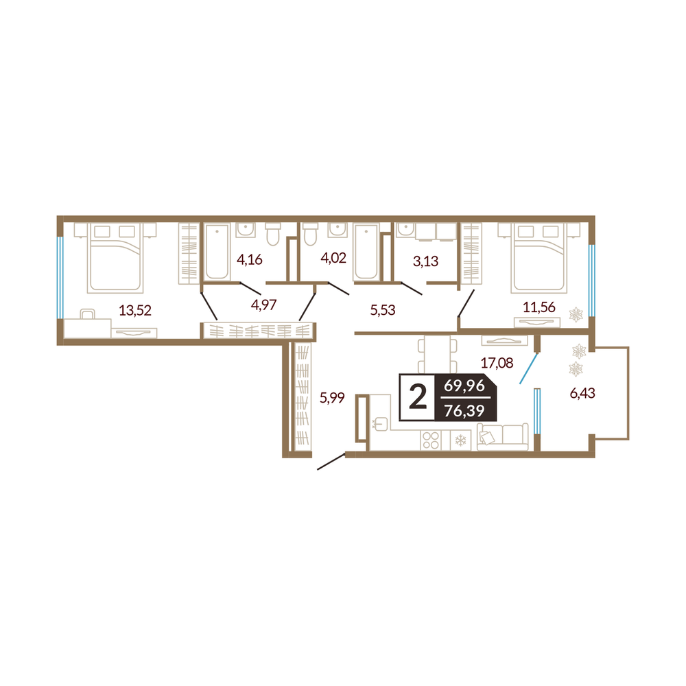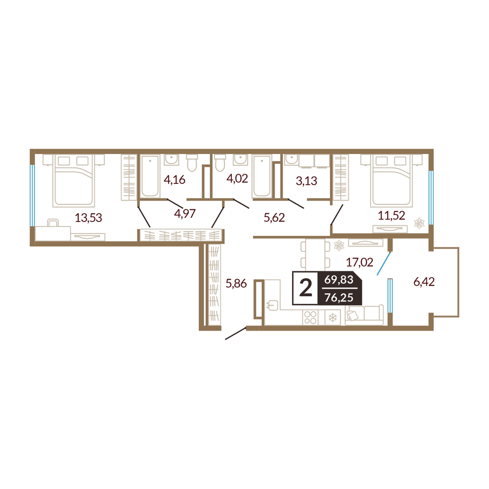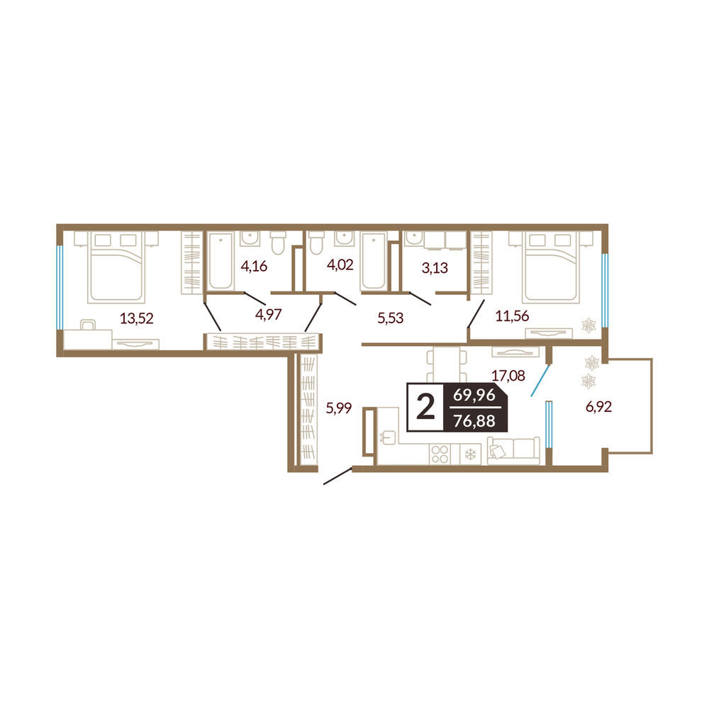 2-комнатная 76.88 м