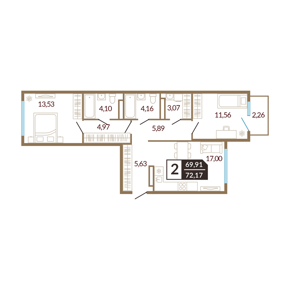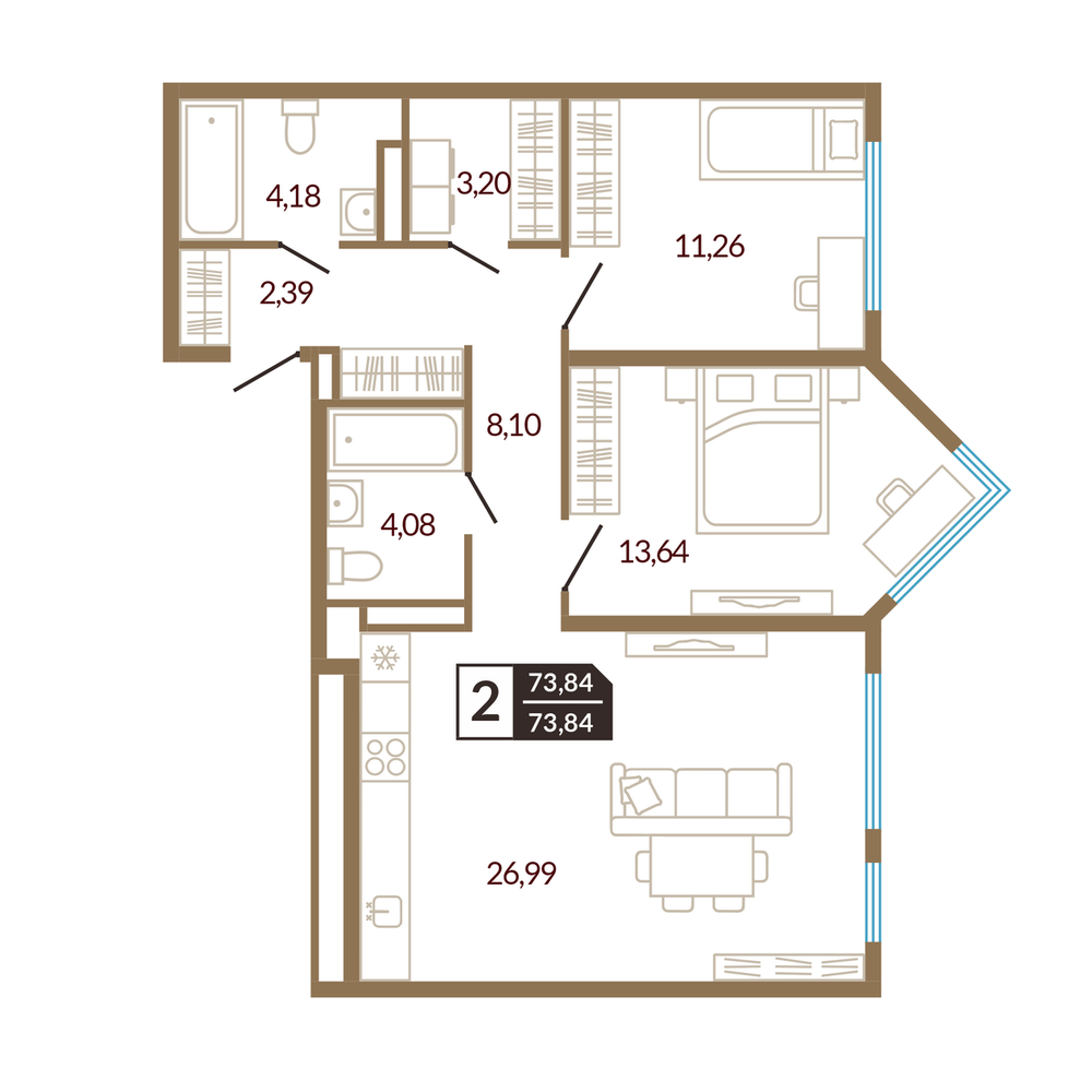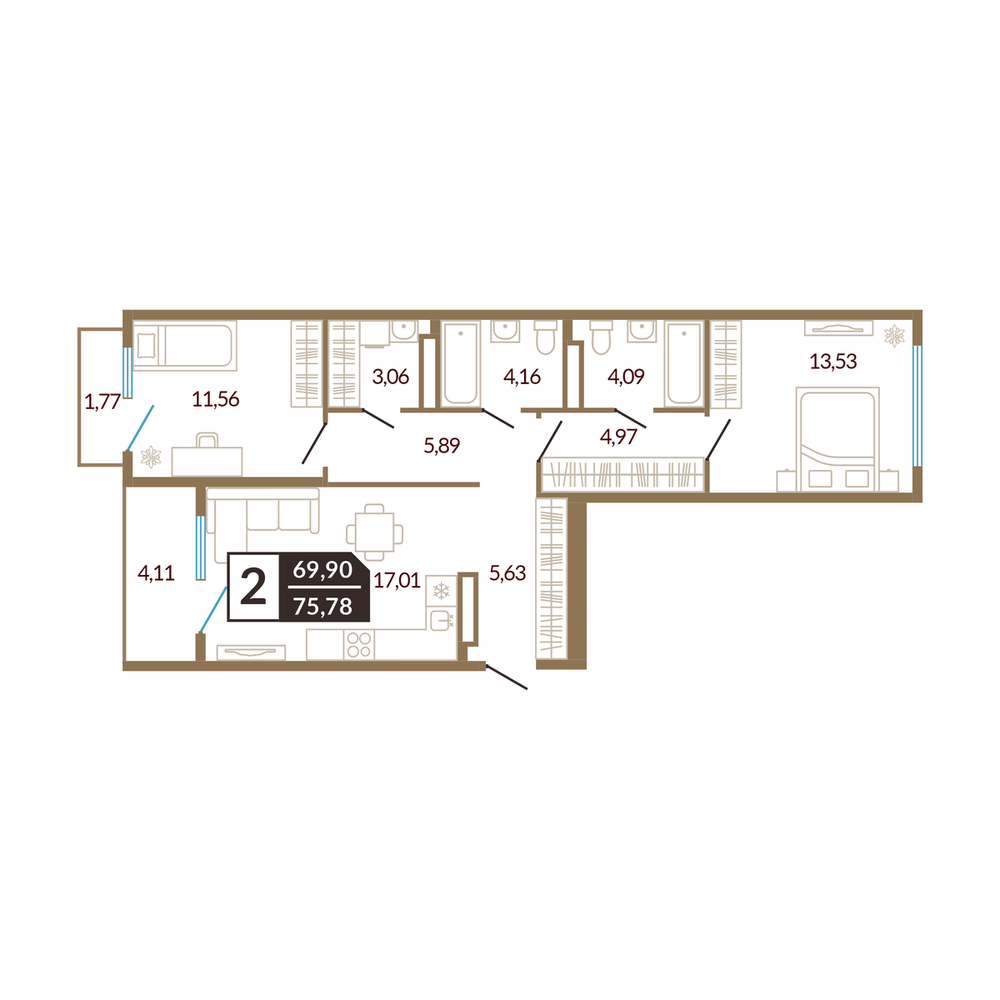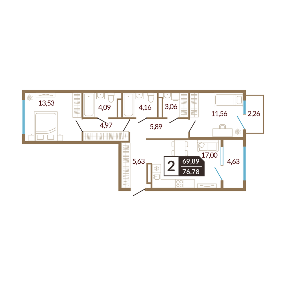 2-комнатная 76.88 м