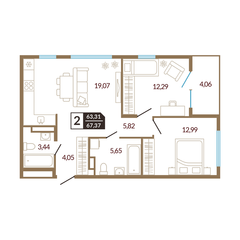 2-комнатная 64.49 м