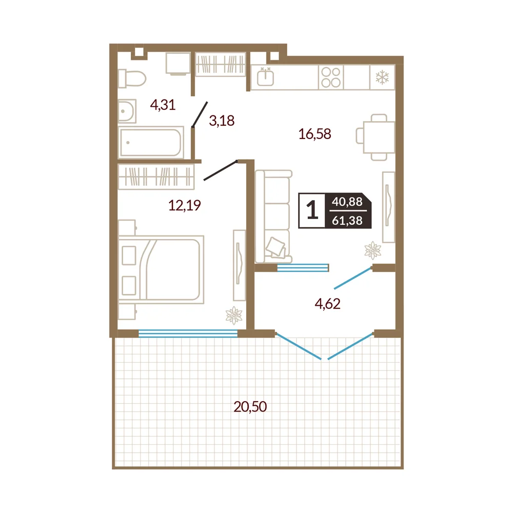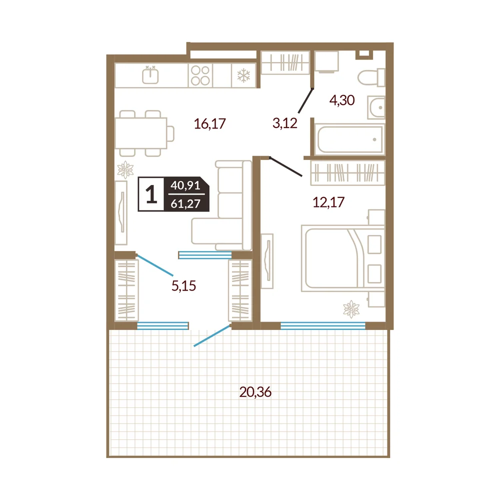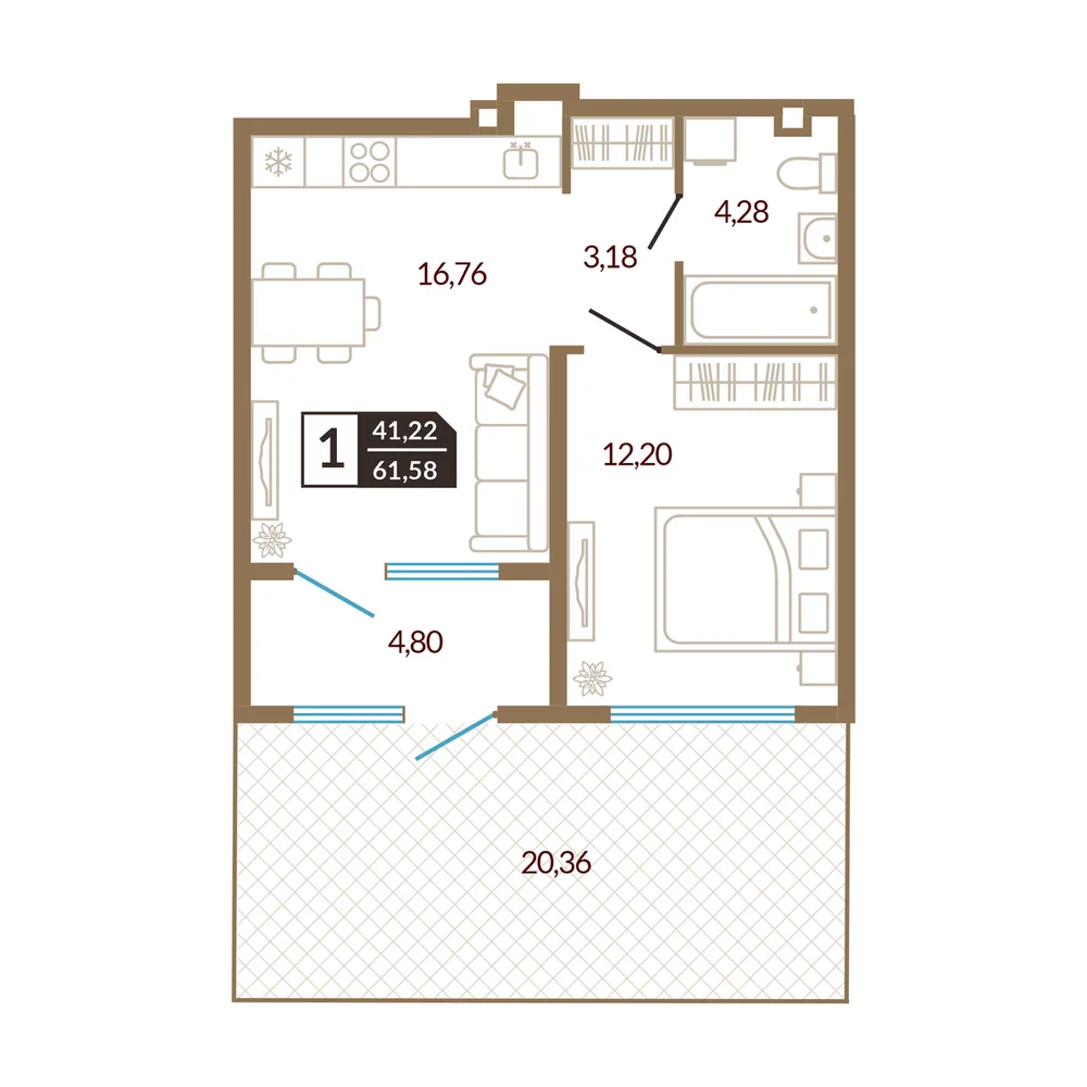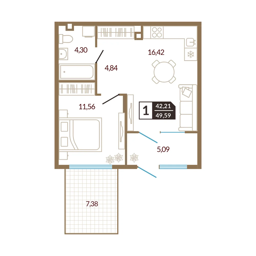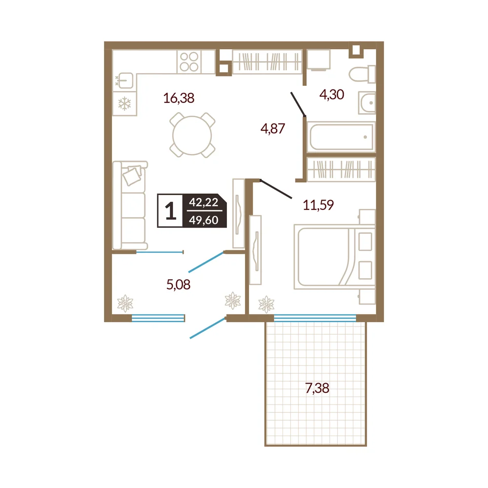 1-комнатная 41.22 м