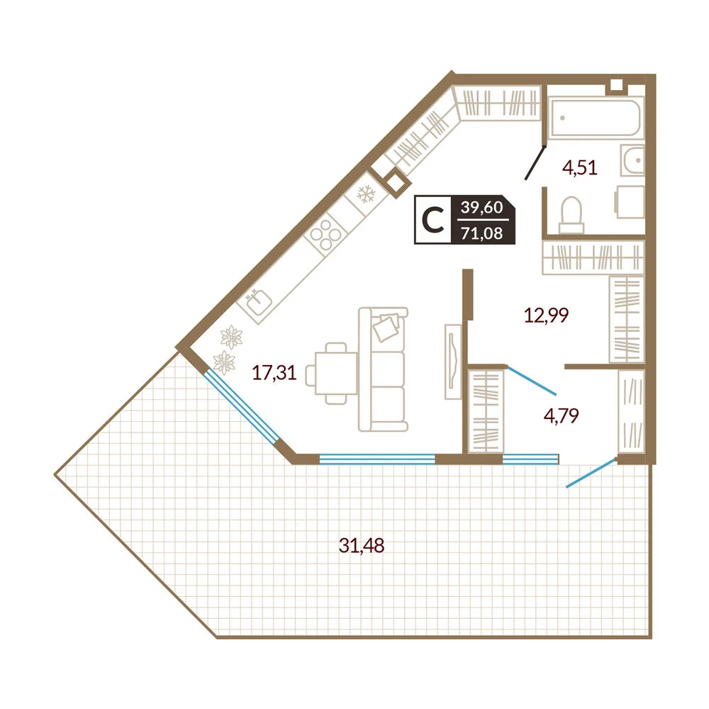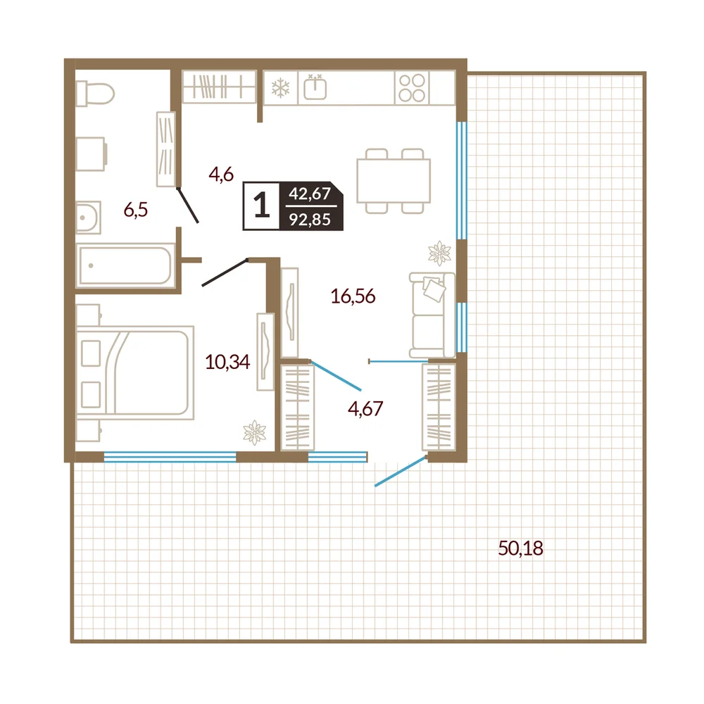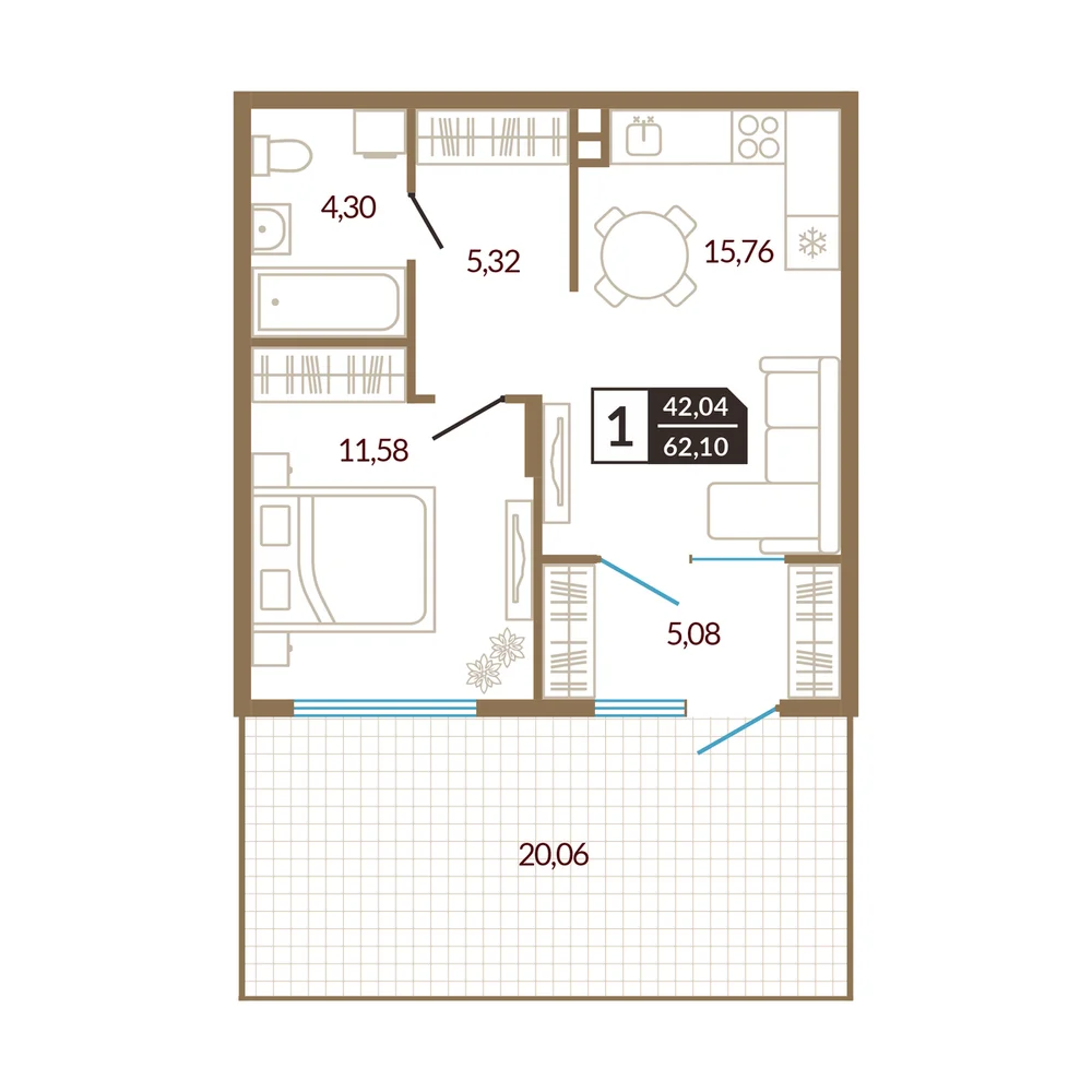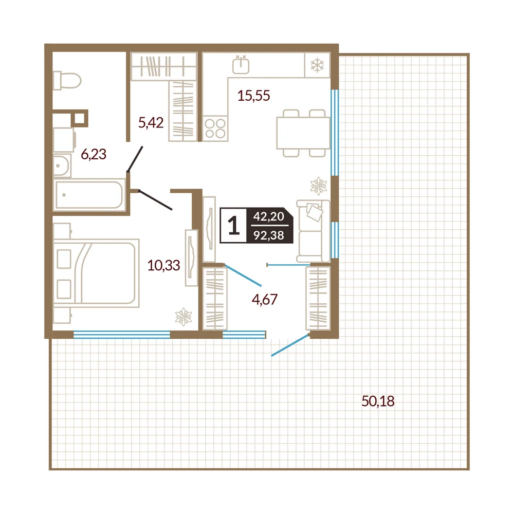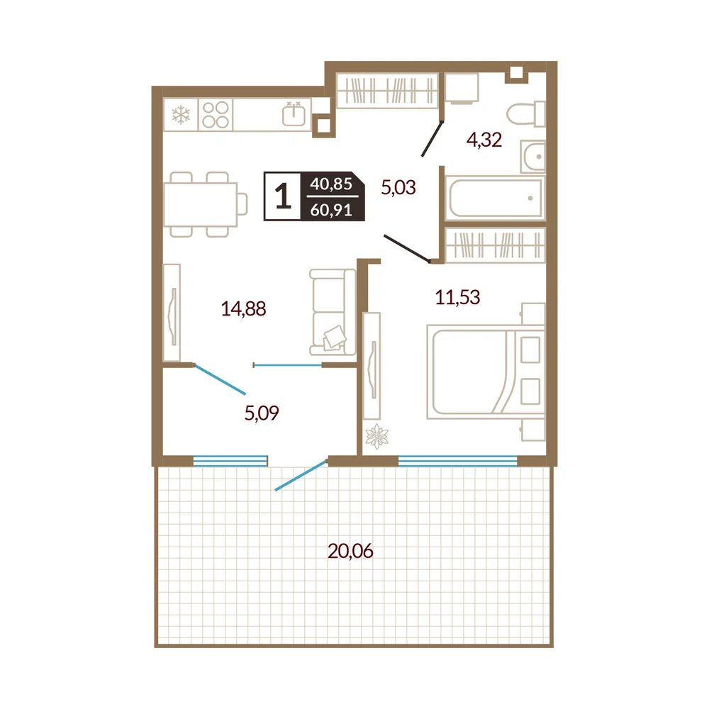 1-комнатная 41.22 м