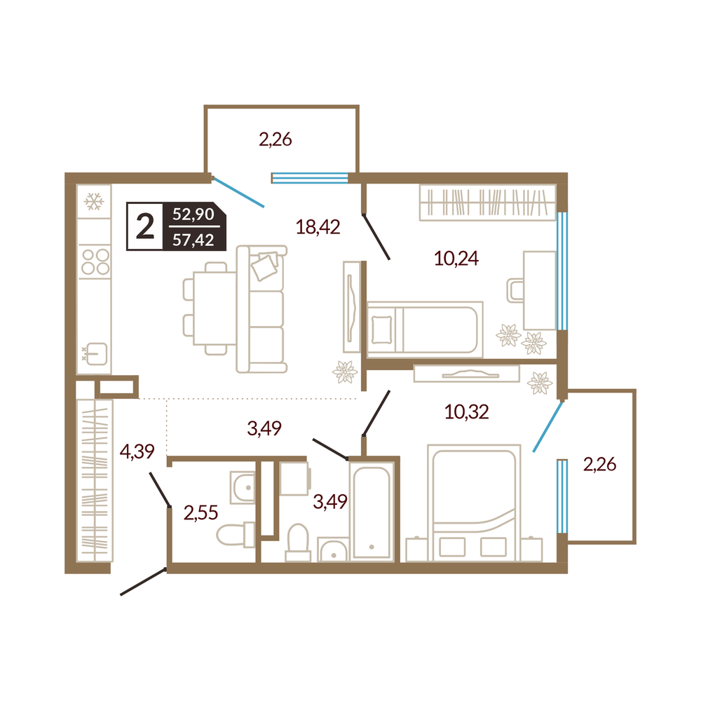 1-комнатная 52.02 м